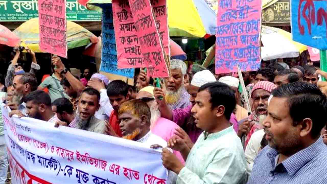 তিনি আরও বলেন, তারা মার্কেটের জমিদারি ভাড়া উত্তোলন বন্ধ করে মার্কেটের সামনের নির্মাণাধীন পানির রিজার্ভ ট্যাঙ্কির ওপর অবৈধভাবে দোকান বসিয়ে প্রায় ৩০ লাখ টাকা গ্রহণ করেছে। এ বিষয়ে আমরা স্বরাষ্ট্রমন্ত্রী, স্বরাষ্ট্র সচিব ও রাজনৈতিক মহলসহ বিভিন্ন আইন প্রয়োগকারী সংস্থাকে বিষয়টি লিখিতভাবে অবহিত করেছি। মার্কেটের ব্যবসায়ীরা সন্ত্রাসী বাহিনীর সদস্যদের আনাগোনা দেখে আতঙ্কিত। তাই সন্ত্রাসীদের মার্কেটে প্রবেশে নিষেধাজ্ঞা ও তাদের বিরুদ্ধে আইনি ব্যবস্থা গ্রহণের দাবি জানাচ্ছি।
