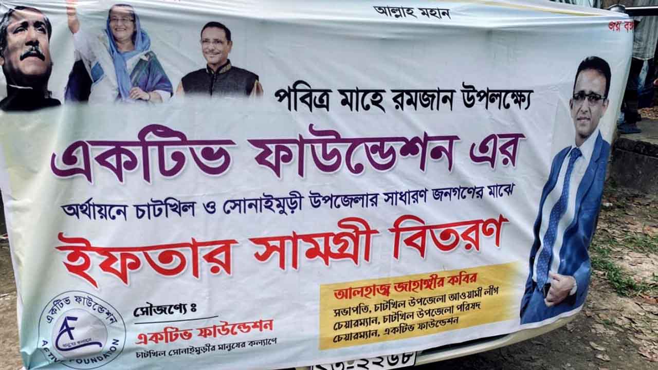 নোয়াখালীর চাটখিলে এক হাজার ২০০ শ্রমিকের মাঝে ইফতার সামগ্রী ও নগদ অর্থ বিতরণ করেছেন উপজেলা আওয়ামী লীগের সভাপতি ও একটিভ ফাউন্ডেশনের চেয়ারম্যান জাহাঙ্গীর কবির।