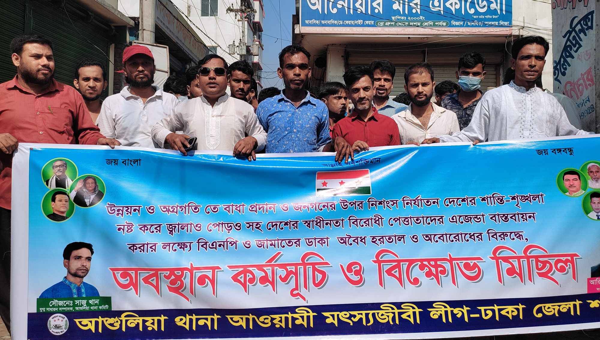 আশুলিয়ায় মৎস্যজীবী লীগের অবরোধ বিরোধী মিছিল