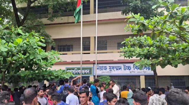 নিয়াজ মুহম্মদ উচ্চ বিদ্যালয়ের শিক্ষক জামাল উদ্দিন বলেন, কয়েকদিন পর জেলায় বিজ্ঞান মেলা হবে। ছাত্রছাত্রীরা স্কুলের তৃতীয় তলায় প্রজেক্ট বানাচ্ছিল। ল্যাবে কাজ করার সময় ভুলবশত আগুন লেগে যায়। ছাত্রছাত্রীরা আগুন আগুন বলে চিৎকার করছিল। এমন সময় দৌড়ঝাঁপ করে বের হতে গিয়ে সিঁড়ির রেলিং ভেঙে যায়। ছাত্রছাত্রীরা একজনের ওপর আরেকজন পড়ে গেলে কয়েকজন আহত হয়। আহতদের হাসপাতালে নেয়া হয়।