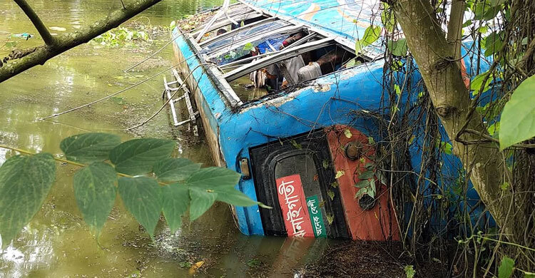 প্রত্যক্ষদর্শীরা জানান, শেরপুর থেকে ছেড়ে আসা আকাশ বিকাশ পরিবহনের একটি বাস ১৫-২০ জন যাত্রী নিয়ে ঝিনাইগাতীতে যাচ্ছিল। পথে খৈলকুড়া এলাকায় নিয়ন্ত্রণ হারিয়ে বাসটি পুকুরে পড়ে যায়। পরে স্থানীয়রা যাত্রীদের উদ্ধারের চেষ্টা করেন। এসময় একটি শিশু নিখোঁজ হয়। খবর পেয়ে উদ্ধার অভিযান পরিচালনা করে ফায়ার সার্ভিস।