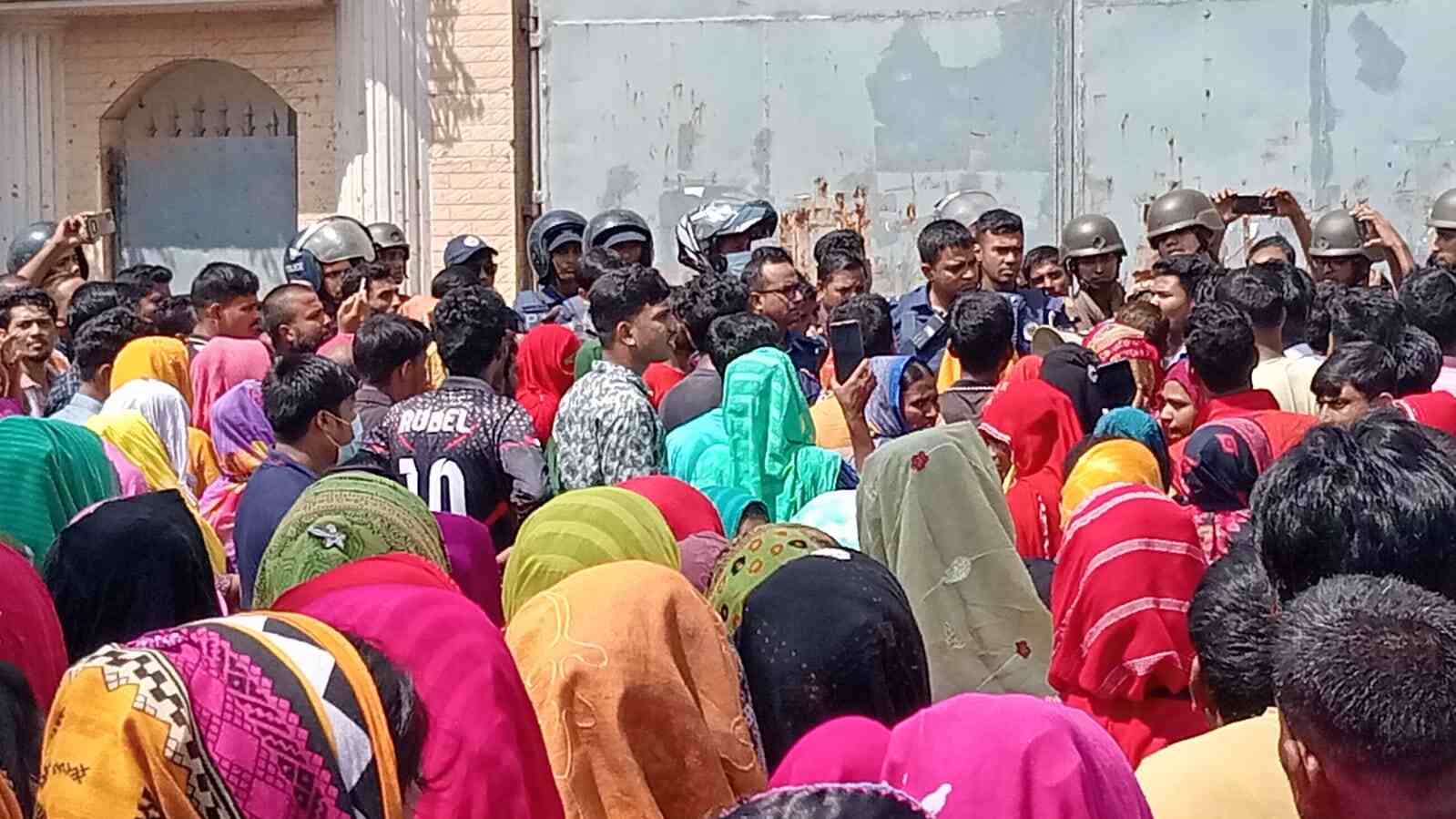 ঢাকার আশুলিয়ায় বকেয়া বেতনের দাবিতে কারখানার সামনে সড়কে অবস্থান নিয়ে বিক্ষোভ করছে একটি তৈরি পোশাক কারখানার শ্রমিকরা। পরে পুলিশ ঘটনাস্থলে গিয়ে পরিস্থিতি নিয়ন্ত্রণ নেয়। এ সময় নিরাপত্তার জন্য পার্শ্ববর্তী অন্তত ১৫টি কারখানা ছুটি ঘোষণা করেছে কতৃপক্ষ।