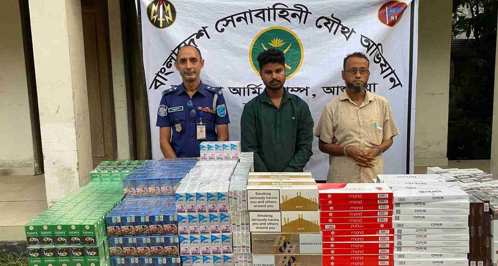 আশুলিয়ায় বিপুল পরিমাণ অবৈধ বিদেশী সিগারেটসহ আটক ২