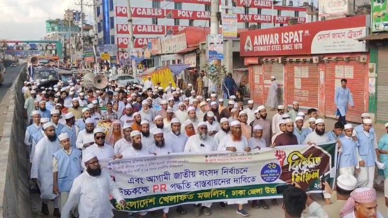 সাভারে পাঁচ দফা দাবিতে খেলাফত মজলিসের বিক্ষোভ মিছিল