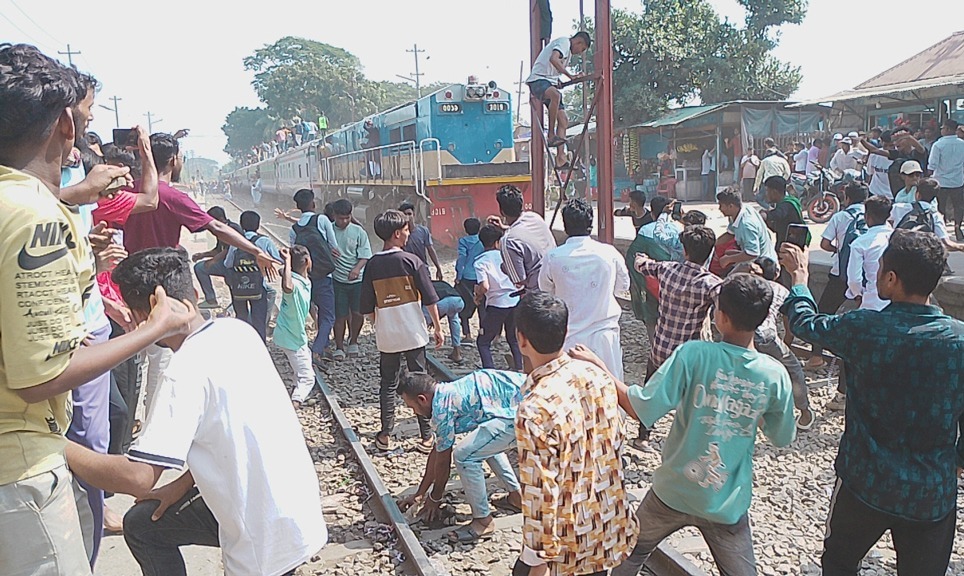 স্থানীয় বাসিন্দা রহমত আলী বলেন, ‘সকালে ট্রেন আটকিয়ে অবরোধ চলছিল। শেষের দিকে হঠাৎ কিছু কিশোর আটকে থাকা ট্রেন লক্ষ্য করে পাথর মারতে থাকে। এসময় আতঙ্ক ছড়িয়ে পড়ে।’