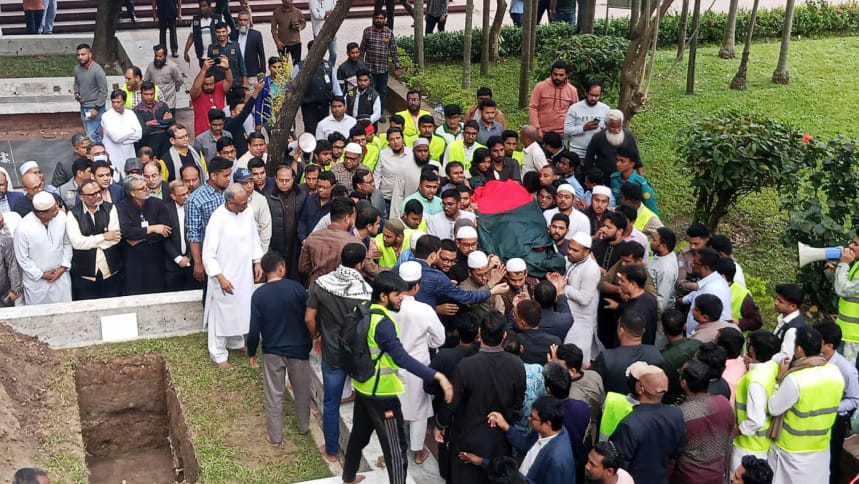ইনকিলাব মঞ্চের মুখপাত্র শরিফ ওসমান হাদির দাফন সম্পন্ন হয়েছে। হাদির জানাজার নামাজ পড়িয়েছেন তার বড় ভাই আবু বকর সিদ্দিক।
